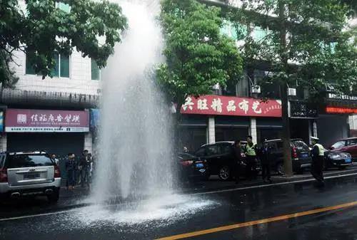 一辆越野车因停车不慎撞断路边消防栓,导致阀门失控、水柱喷涌达2层楼高,瞬间马路变“泽国”。